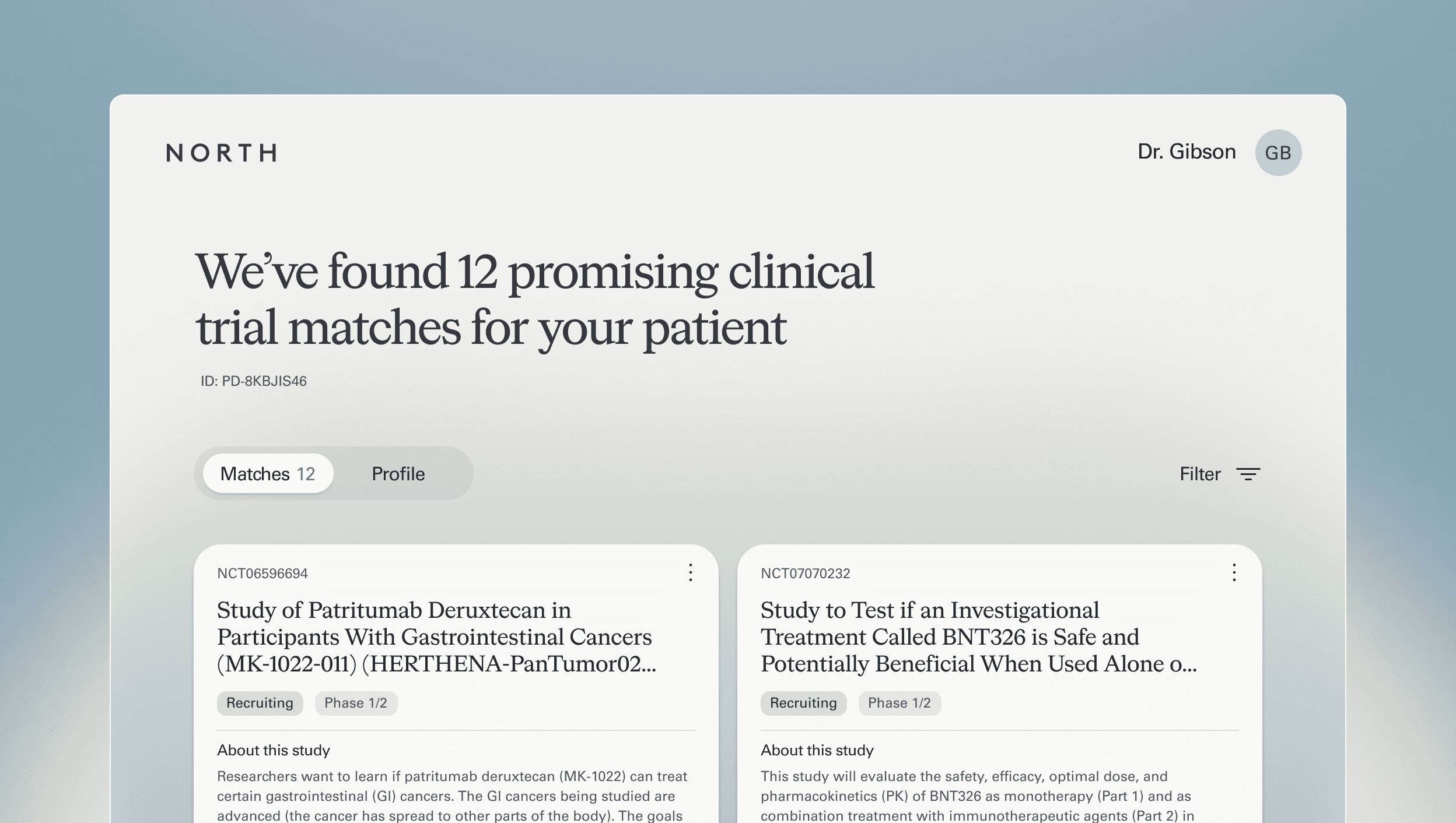 We handle the trial matching for you, so you can focus on care. North searches 7,000+ active cancer trials and delivers a curated trial report.